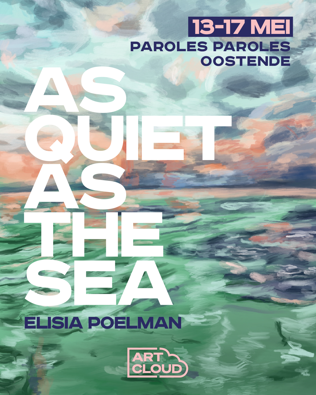 Geïnspireerd door haar nieuwe omgeving in Oostende, waar het licht en de nabijheid van de zee al generaties kunstenaars hebben beïnvloed, presenteert Elisia Poelman haar nieuwe solotentoonstelling: As Quiet as the Sea, te zien bij Paroles Paroles in het SKY District. De tentoonstelling wordt georganiseerd door The Art Cloud Gallery, die zich richt op hedendaags Belgisch talent.